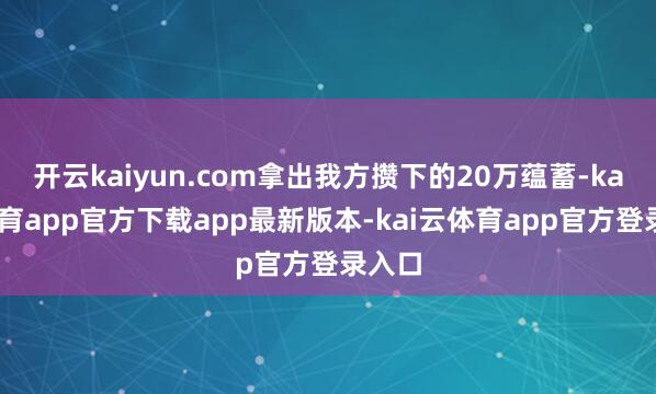 最蹙迫的,保持生动应变的才略,实时调节战略,能力顺利发展。总之,20万天然未几,但用得巧,如故能把事情作念成的!